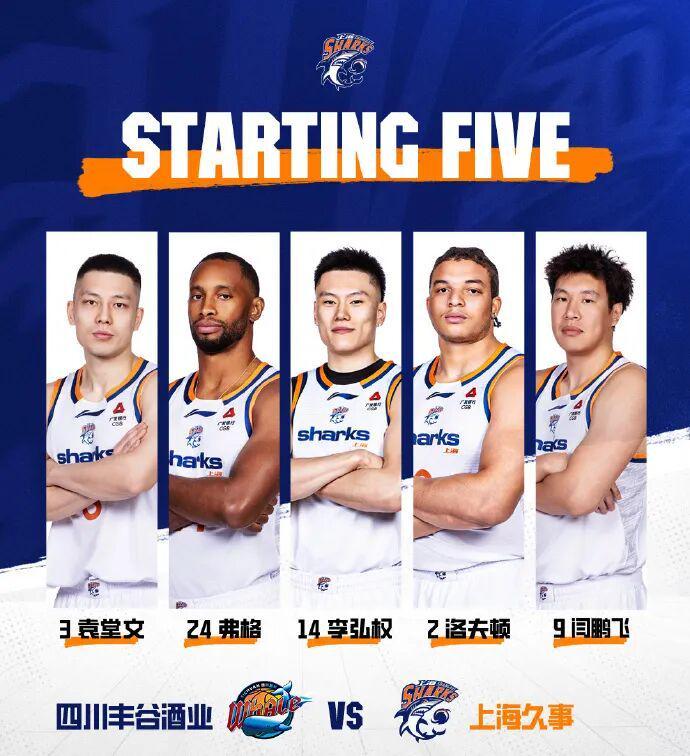今晚上海男篮迎来CBA常规赛第25轮的比赛,客场挑战副班长四川男篮,后者本赛季一胜难求。此役,大鲨鱼先发五人为:袁堂文、弗格、李弘权、洛夫顿以及闫鹏飞。