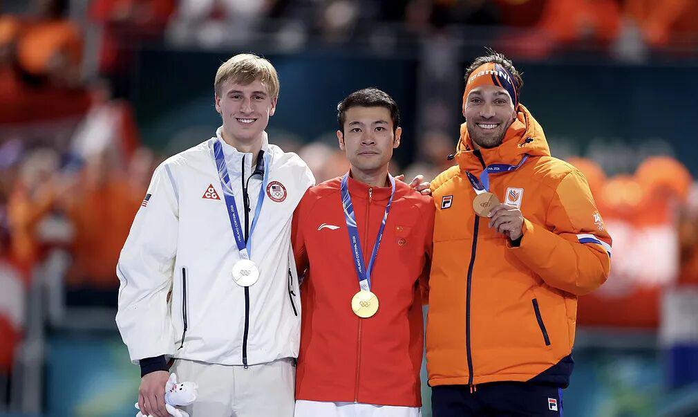 1分41秒98,不止是一个成绩,更是中国速滑的一个重要的里程碑,冲线后,宁忠岩身披国旗激动落泪。这也是几代冰雪人拼搏的最好回报。